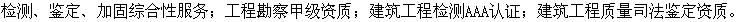 巖土工程勘察設計、地基處理、建筑物沉降觀測;結構檢測、鑒定、改造加固設計施工;建筑材料檢測,混凝土(砂漿)非破損檢測;室內環境主要污染物質檢測;地基基礎、混凝土構件、鋼屋架等結構檢測;工程監理;工程技術鑒定,司法鑒定,事故診斷及處理;特種工程施工等方面的研究與開發應用、技術服務工作。